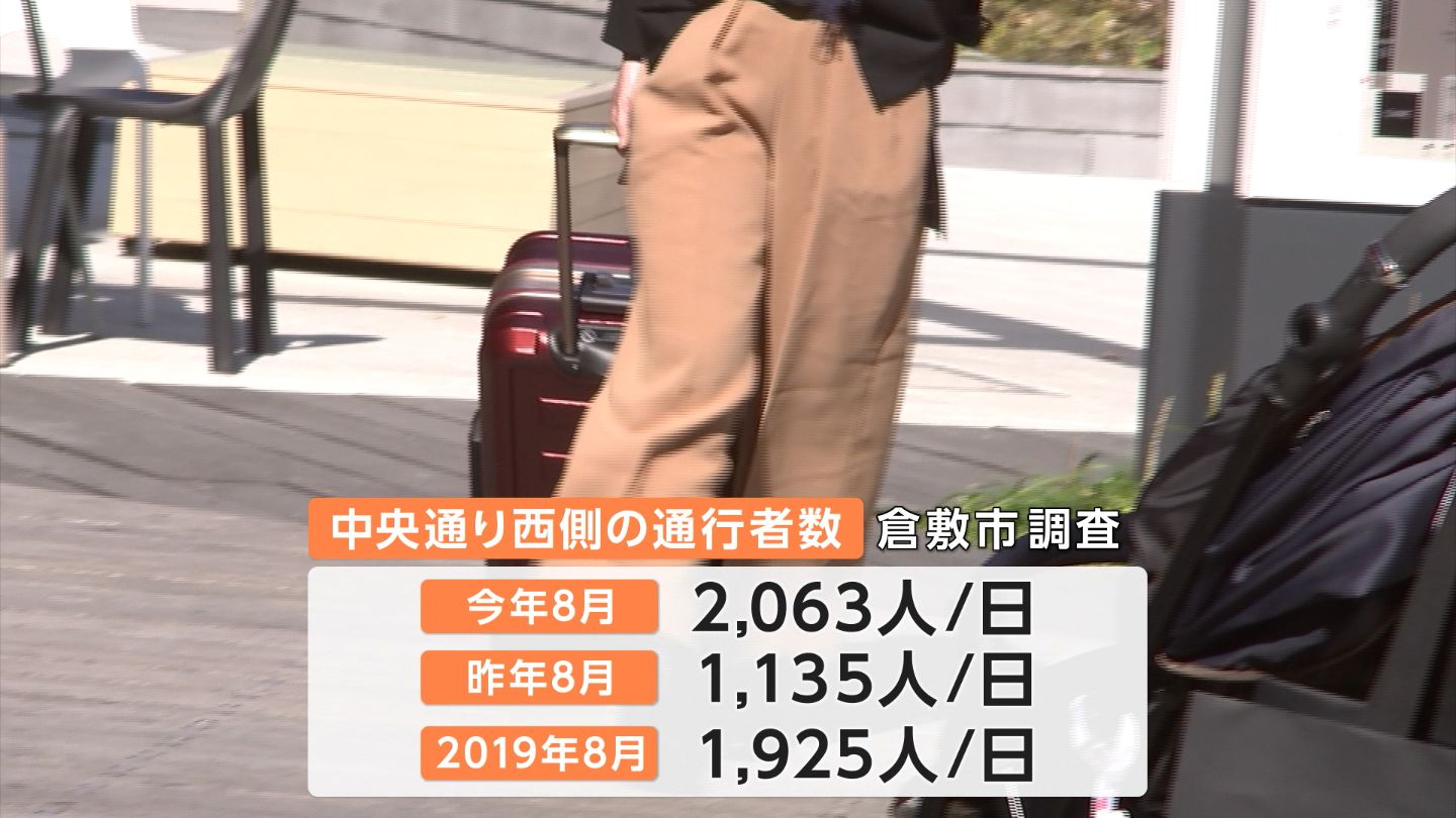 あちてらすの完成によって、変化が生まれたのは、倉敷駅から美観地区に向かう人の流れです。建物のある中央通り西側の通行者が、オープン前の去年と比べて8割以上、コロナ禍前の2019年と比べても増えているといいます。