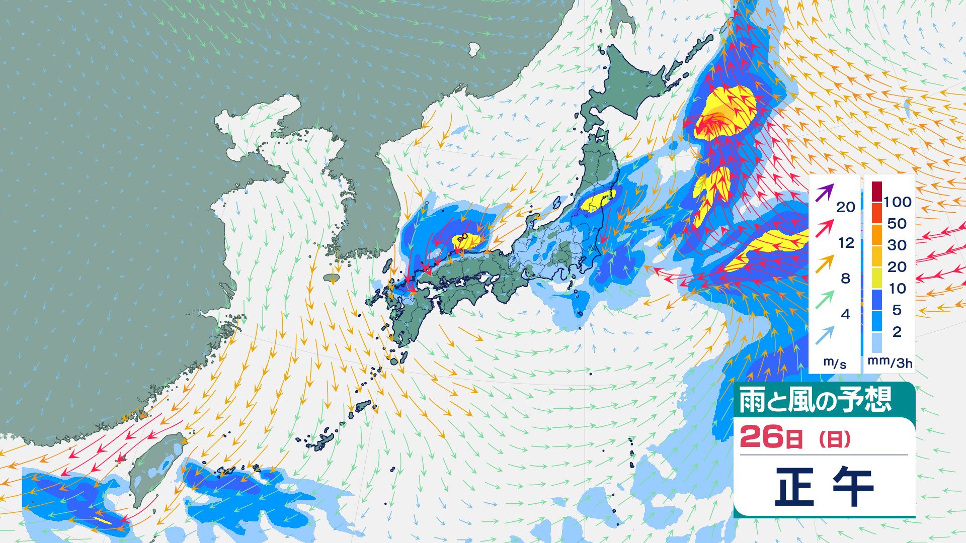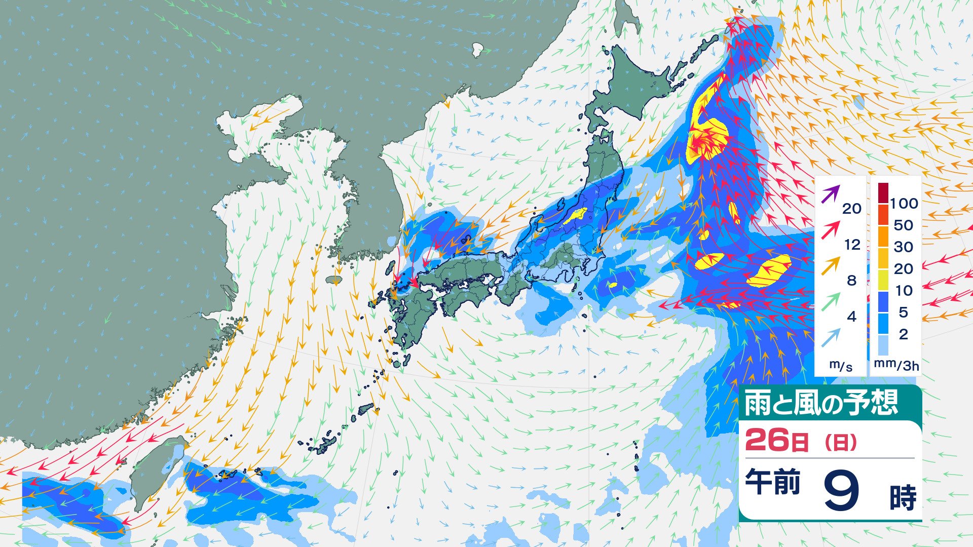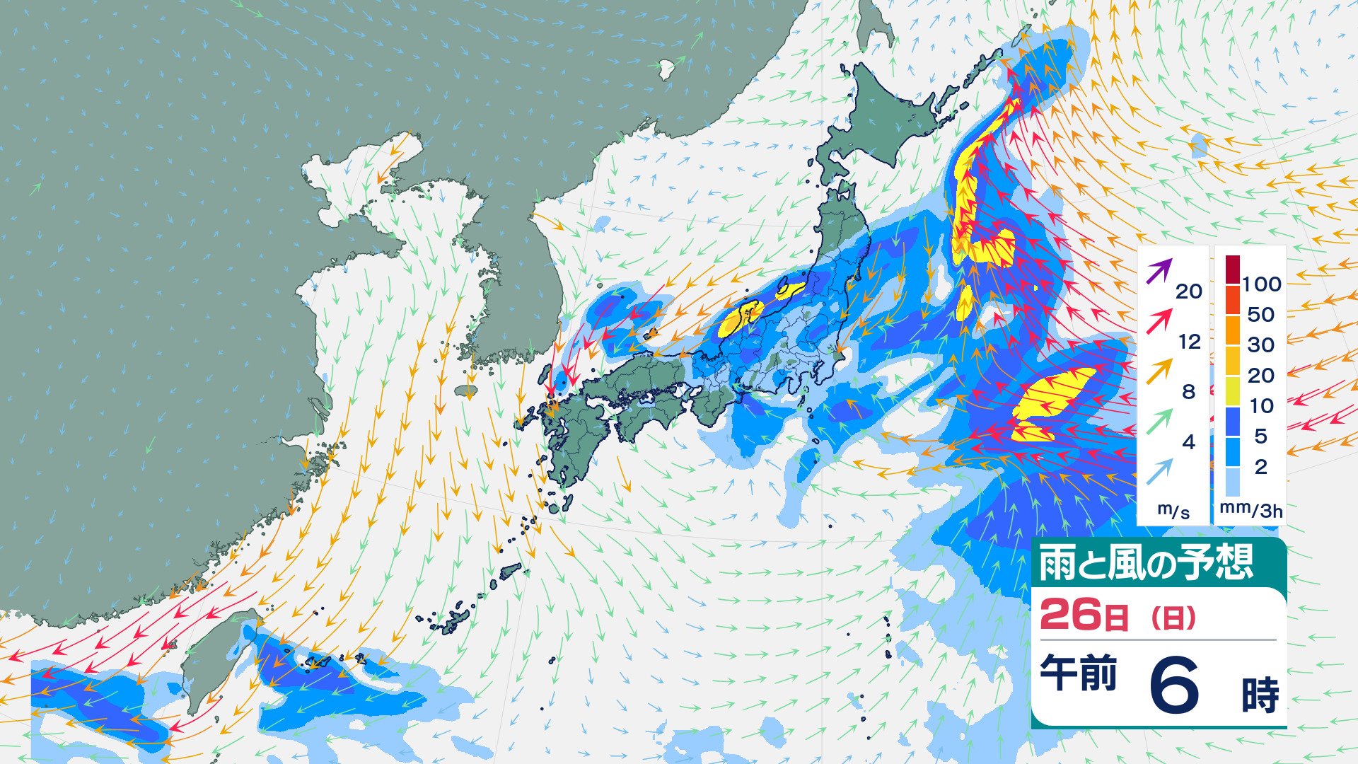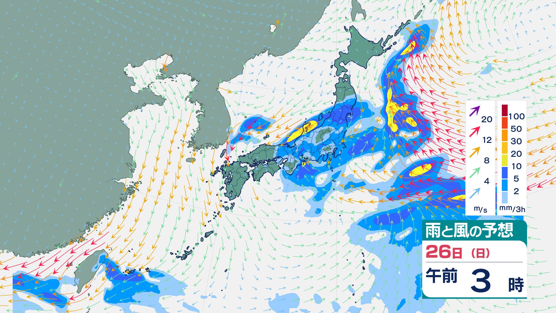 【台風情報】先島諸島に「熱帯低気圧=台風のたまご」が発生 今後の進路は? 台風に発達? 気象予報士が詳しく解説 伊豆諸島では「線状降水帯」発生のおそれ 21日~26日までの雨風のシミュレーションをみる【気象庁 21日午後9時更新】 2025年10月21日(火) 20:57 岡山 26日(日)雨と風のシミュレーションをみる 26日(日)の3時間ごとの雨と風のシミュレーションは【画像㊶】からの通りです。 【画像㊶】 【画像㊷】 【画像㊸】 【画像㊹】 【画像㊺】