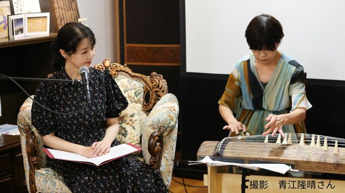 19日、「詩人 永瀬清子とハンセン病文学の読書室」で開かれた朗読会で、箏曲家の景子さんが、新曲「星座の娘」を披露しました。
