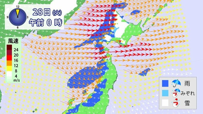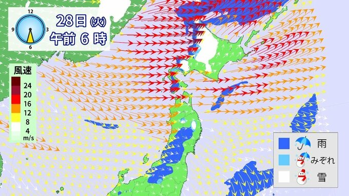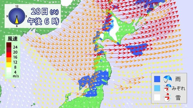 週明け27日(月)からは「冬型の気圧配置」が強まり北海道では雪の予報も