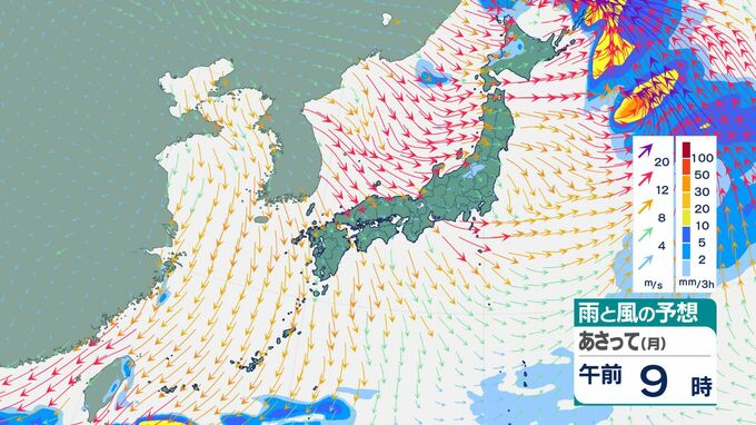 【大雨警戒】日曜は日本列島の広い範囲で天気崩れる見込み 「東海・関東・東日本では警報級大雨のおそれ」どうなる今後の天気は?気象予報士が詳しく解説「29日(水)までの雨風シミュレーション」【気象庁 25日午後6時半更新】 2025年10月25日(土) 18:35 香川 27日(月)の雨と風のシミュレーションをみる 27日(月)3時間ごとの雨と風のシミュレーションは【画像㉖~㉞】のようになっています。 【画像㉖】 【画像㉗】 【画像㉘】 【画像㉙】 【画像㉚】 【画像㉛】 【画像㉜】 【画像㉝】