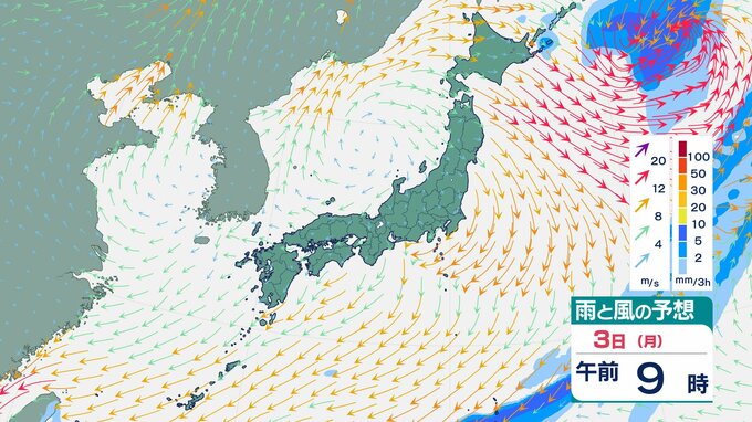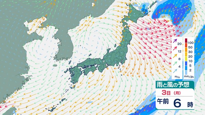 【大雨暴風に警戒】3連休の天気はどうなる?「日本列島の広い範囲で天気崩れる見込み 警報級の大雨と風のおそれ」気象予報士が詳しく解説 10月29日~11月3日の雨風シミュレーション【気象庁 29日午後4時発表】 2025年10月29日(水) 16:09 岡山 天気 11月3日(月・祝)「雨と風のシミュレーション」をみる 11月3日(月・祝)3時間ごとの雨と風のシミュレーションは【画像㊶~】の通りです。 【画像㊶】 【画像㊷】 【画像㊸】 【画像㊹】