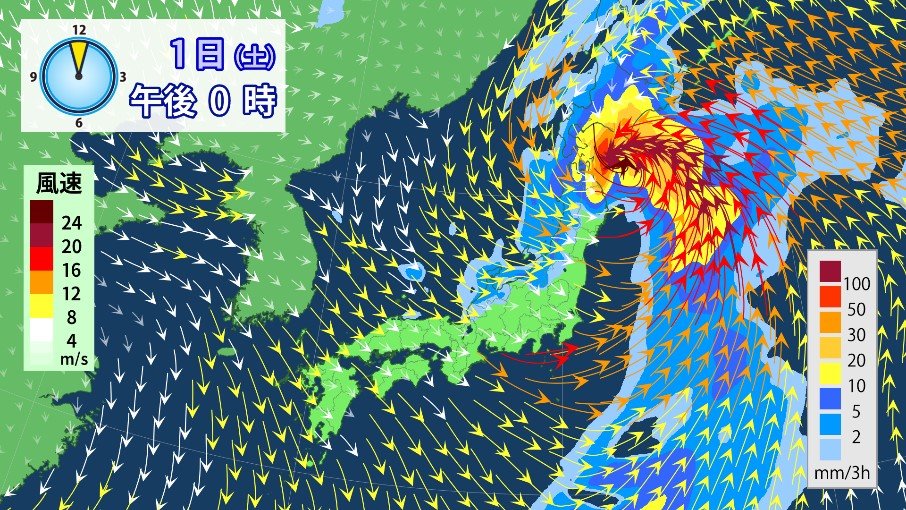 「10月31日(金)は日本付近で気圧が低く、西日本で低気圧が発生する見通しです。その後、急速に発達しながら北東に進み、11月1日(土)には北日本に位置するでしょう【画像53】【画像54】」