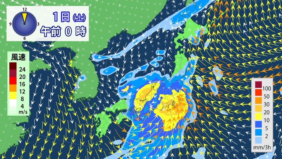 「前線や低気圧に向かって、雨雲や雷雲の材料となる水蒸気が多く流入するため、西日本~北日本の太平洋側の地域を中心に警報級の大雨のおそれがあります」