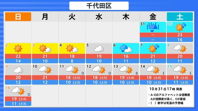 【台風情報】3連休の天気はどうなる?「爆弾低気圧」に加えて「熱帯低気圧=台風のたまご」も発生 雨風シミュレーション【気象庁発表 31日午後8時半】 2025年10月31日(金) 20:22 岡山 全国各地の16日間天気予報をみる 【画像㉜~】は、全国各地の向こう16日間の天気予報です。 【画像㉜】 【画像㉝】 【画像㉞】 【画像㉟】 【画像㊱】 【画像㊲】 【画像㊳】 【画像㊴】 今後の気象情報に注意してください。