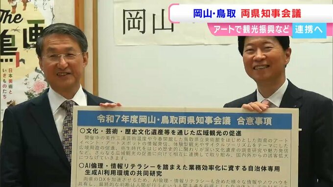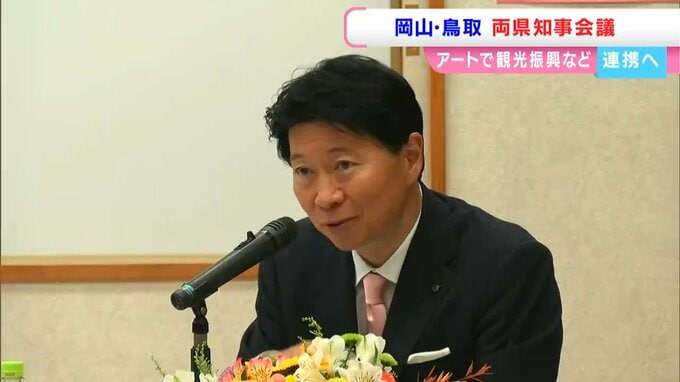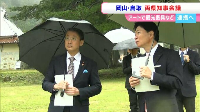 岡山・鳥取両県の知事による会議が岡山県鏡野町で開かれ、アートを軸とした観光振興などで連携していくことが合意されました。
