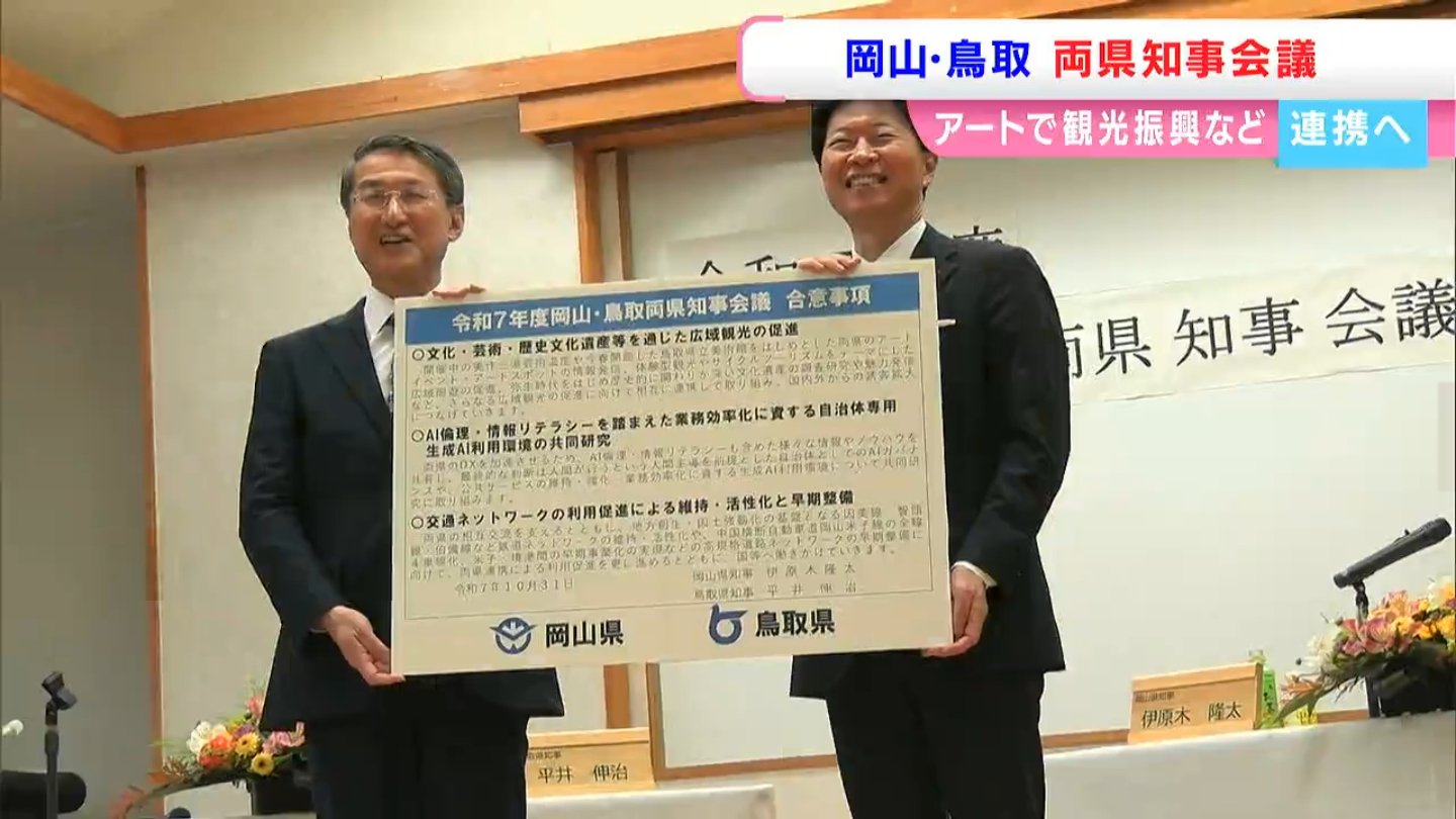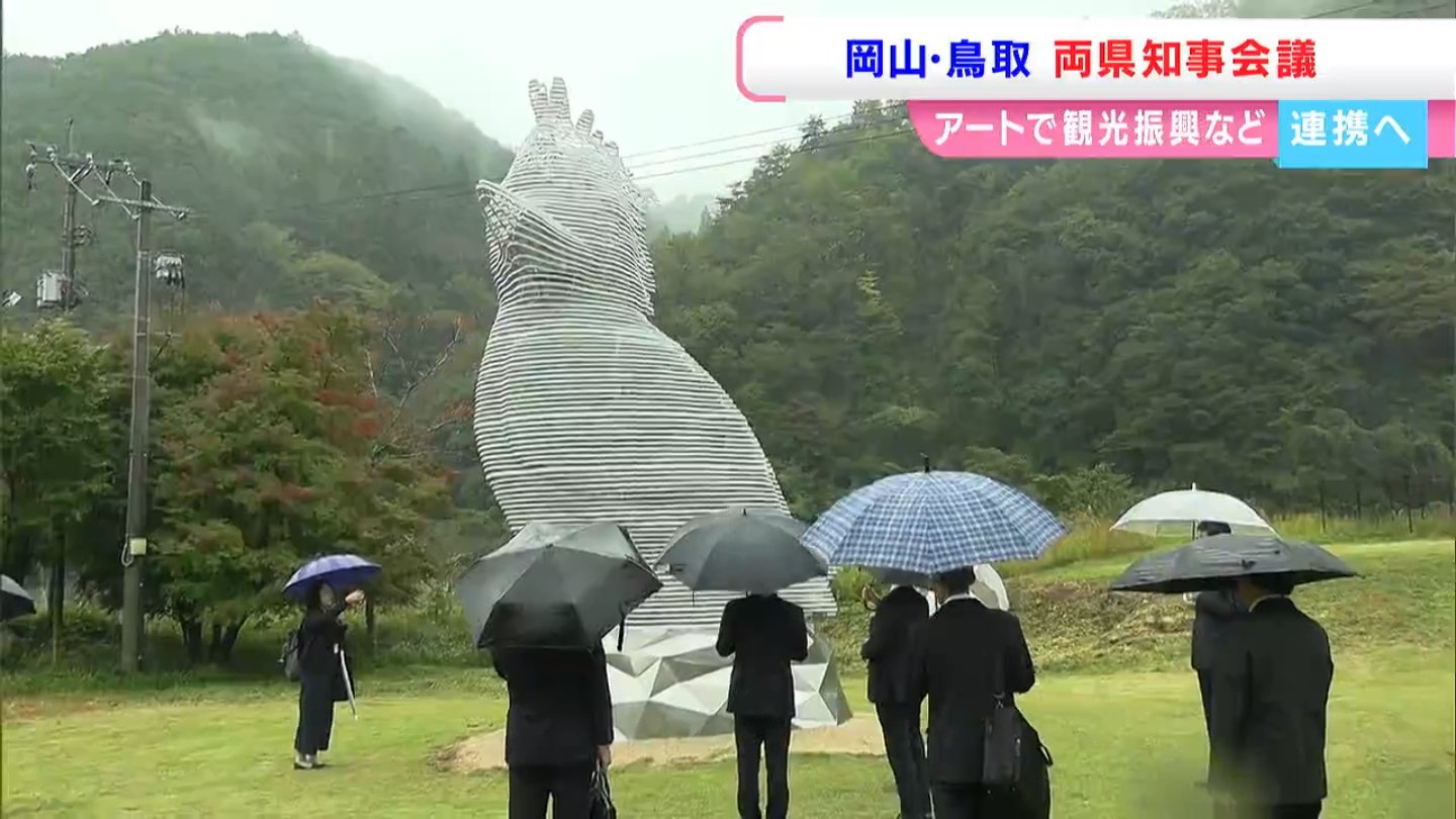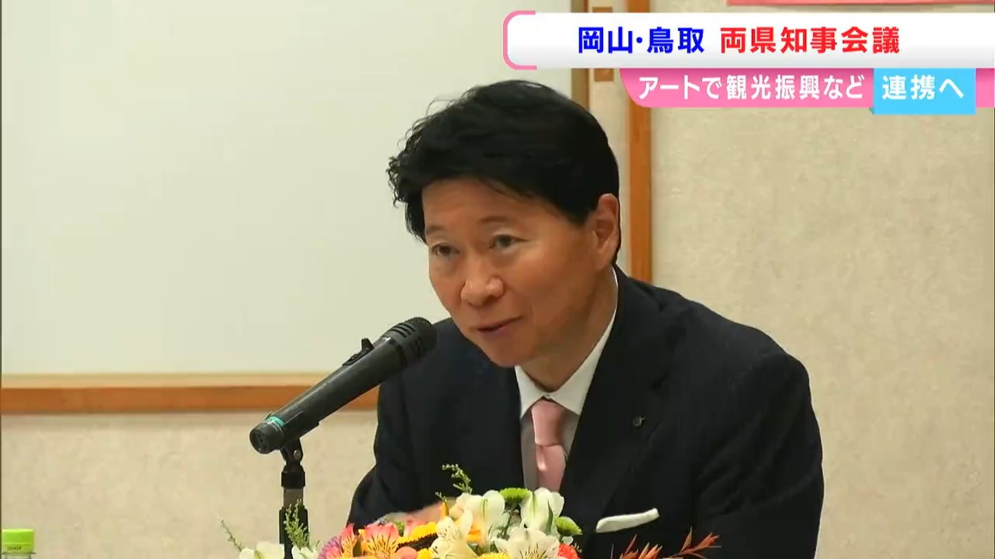 岡山・鳥取両県の知事による会議が岡山県鏡野町で開かれ、アートを軸とした観光振興などで連携していくことが合意されました。
