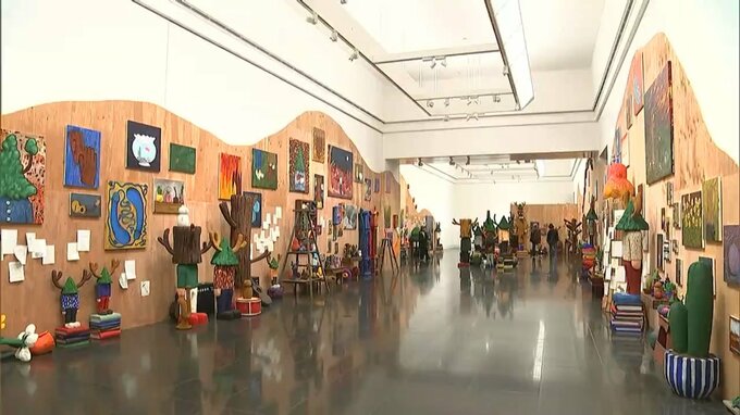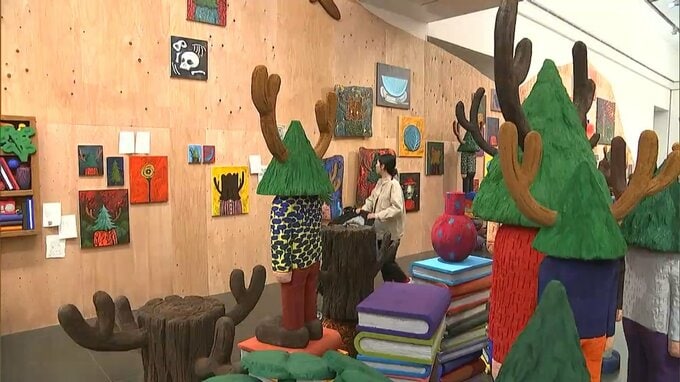 「自然と人間の共存関係」をテーマにした絵画や立体作品など多くの新作を含む約400点が展示されています。