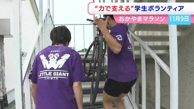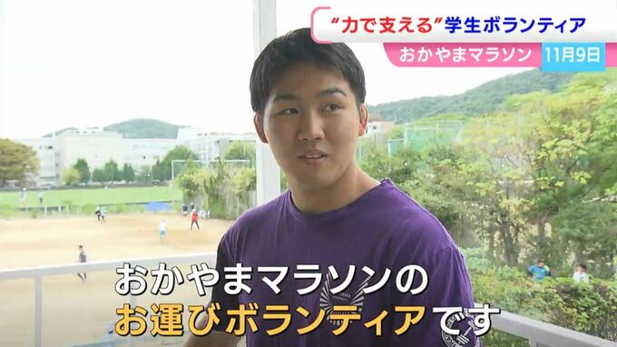 11月9日のおかやまマラソンまで、あとわずかとなりました。イブニングニュースでは注目のランナーやボランティアをシリーズでお伝えしています。今回は大会を力で支える「学生ボランティア」です。
