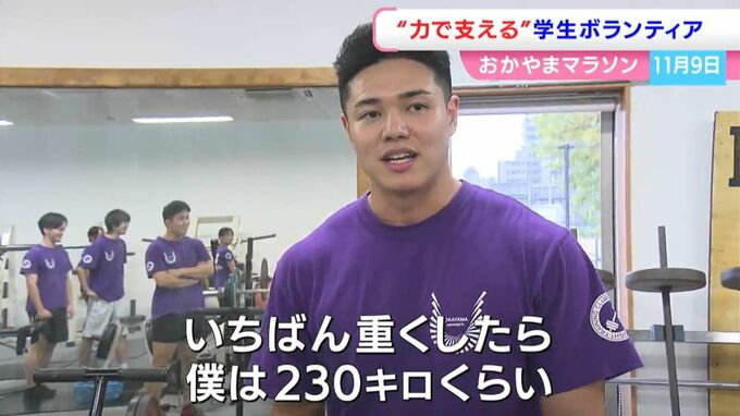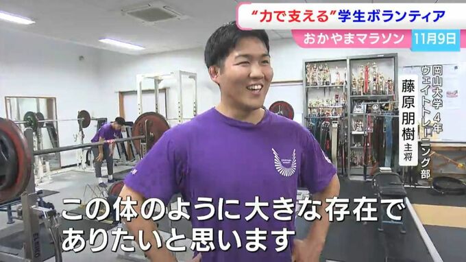 おかやまマラソンを「力で支えたい」と代々お運びボランティアに参加しているのだと藤原主将は話します。