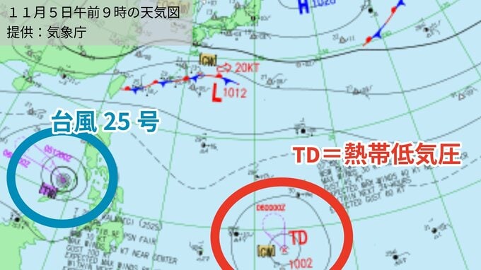 この熱帯低気圧は、きょう午後9時の気象庁の予想天気図【画像②】をみると「台風」に発達する見込みだということです。
