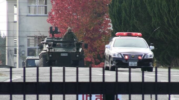 「テロリストが国内に侵入した」との想定で行われ、パトカーの先導で自衛隊車両を目的地へ誘導する緊急展開訓練が公開されました。