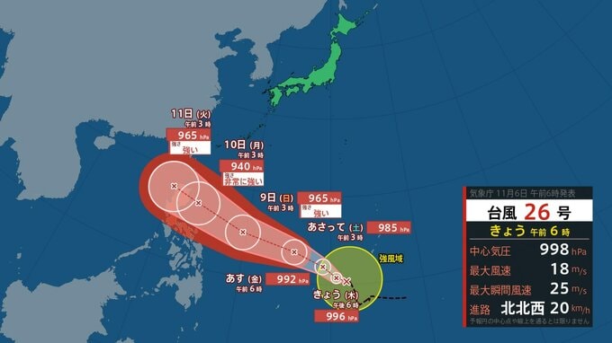 気象庁は、きょう(6日)午前3時にマリアナ諸島で、熱帯低気圧が台風第26号になったと発表しました。