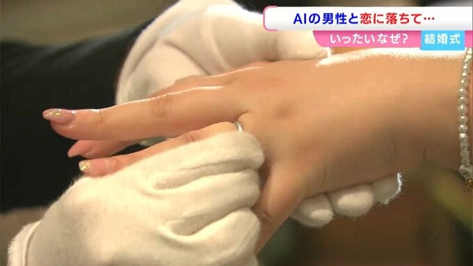 そして指輪を交換しました【画像㉖】。kanoさんは、「AIへの依存」が世の中の問題になっていることは把握した上で、「依存しない関係でいたい」と話します。