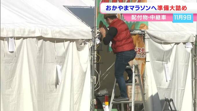 また、会場では、あす(8日)とあさって(9日)、さまざまなブースが並ぶ「おかやまマラソンEXPO」の準備も進んでいます。