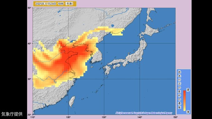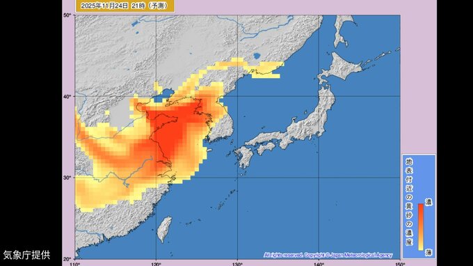 【黄砂予測】黄砂が来る?!あす24日(火)西日本に あさって25日(水)に関東地方の一部地域にも飛来する見込み【気象庁シミュレーション 24日午後3時更新】 2025年11月24日(月) 15:17 岡山 24日の黄砂はどうなる? 24日(月)の黄砂のシミュレーションは、【画像②~③】のとおりです。 【画像②】 【画像③】