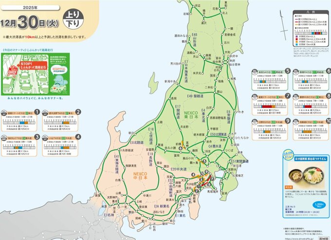 「渋滞予想」12月30日(火)はどこが混む?【東日本】