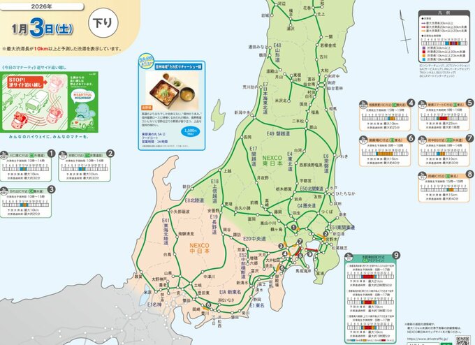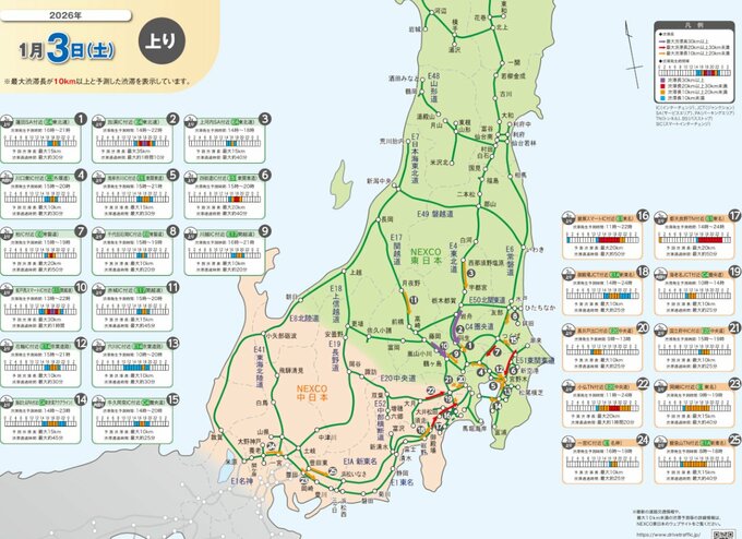 「渋滞予想」1月3日(土)はどこが混む?【東日本】