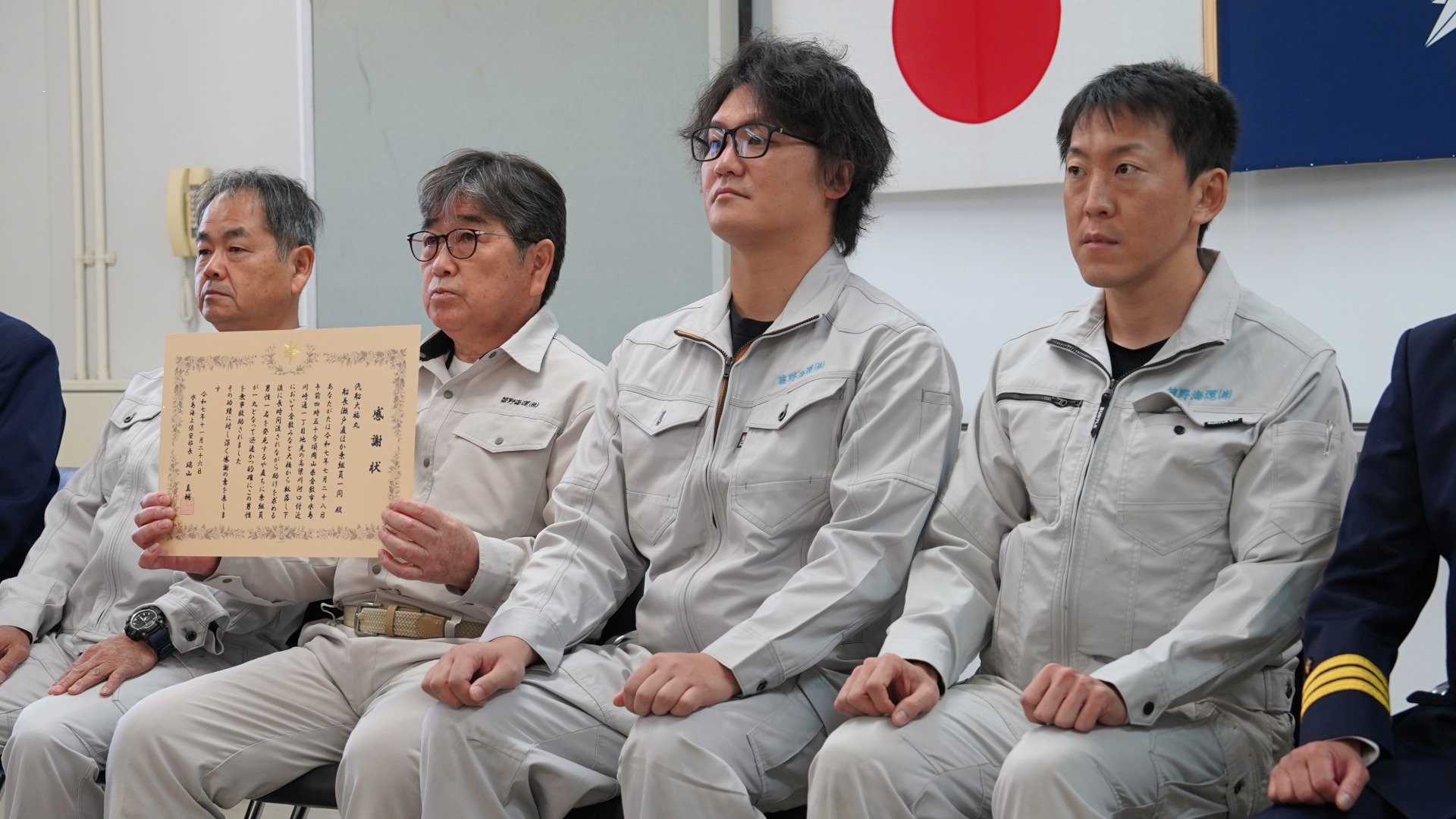 感謝状を受け取った瀬戸船長は、「乗組員を誇りに思う」と仲間たちをねぎらいました【画像⑤】。