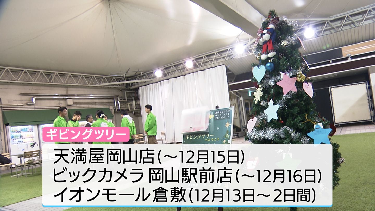ツリーは県内3か所の商業施設で設置されていて、天満屋岡山店では、今月15日まで行われます。
