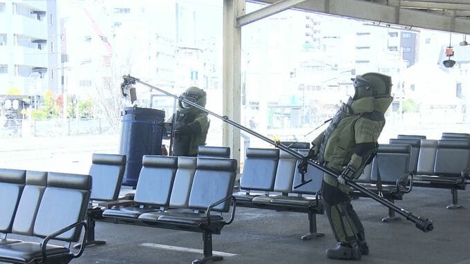 このほか、ホームにある不審物を処理する訓練もあわせて行われました。