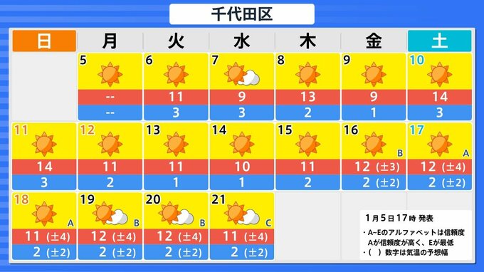 【大雪情報】1月12日頃~東北日本海側・北陸などで「大雪のおそれ」早期天候情報発表【気象庁 雪雨シミュレーション】 2026年1月5日(月) 20:00 岡山 札幌・仙台・東京・名古屋・大阪・広島・福岡・那覇の16日間天気予報【画像㊸~㊿】 【画像㊸】 【画像㊹】 【画像㊺】 【画像㊻】 【画像㊼】 【画像㊽】 【画像㊾】 【画像㊿】 今後の気象情報に注意してください。