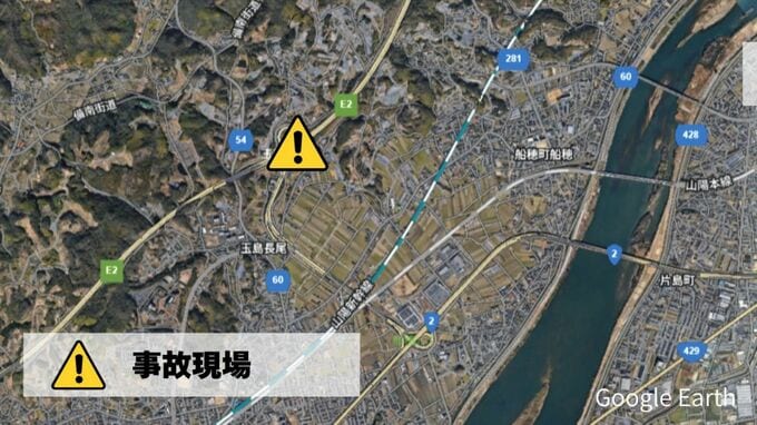NEXCO西日本によりますと、きょう(9日)正午ごろ、山陽自動車道(上り)玉島IC付近で、乗用車3台が絡む事故がありました(【画像①】は現場の地図)。