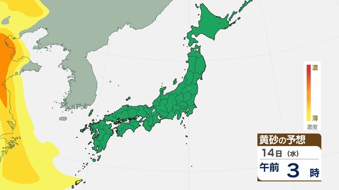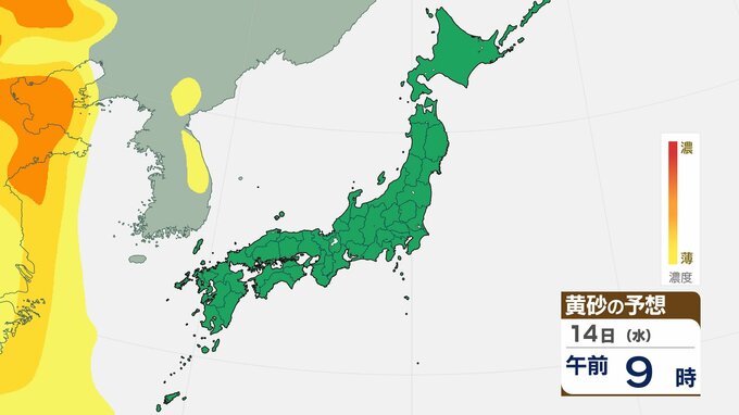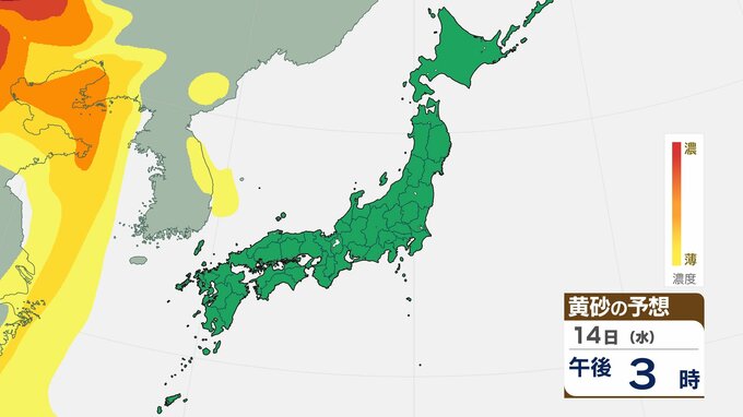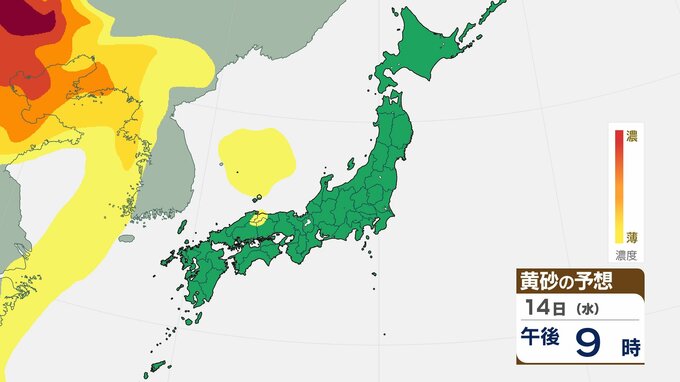 14日(水)は中国地方に黄砂が飛来する見込みです。