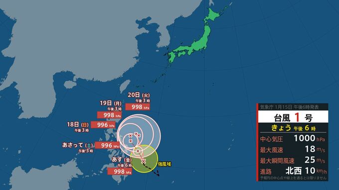 台風1号はあす(16日)午後6時には