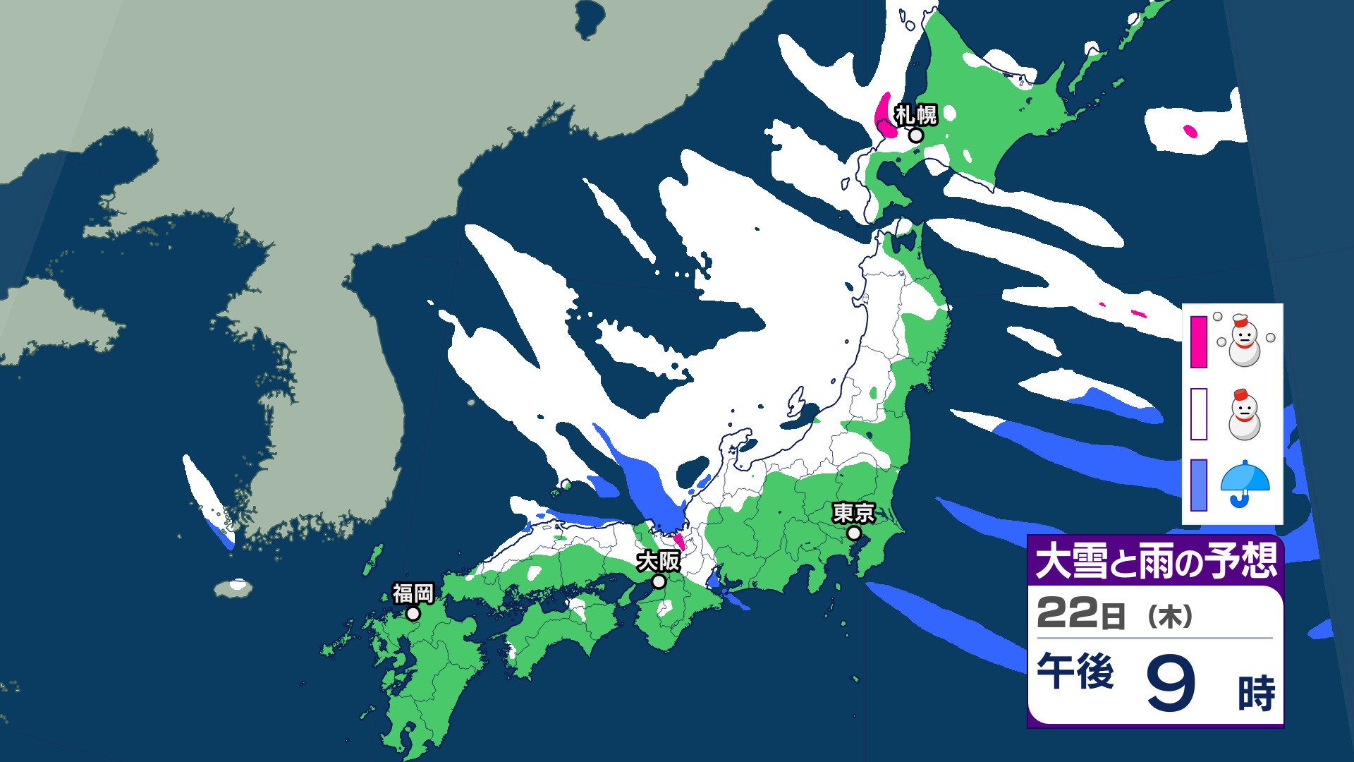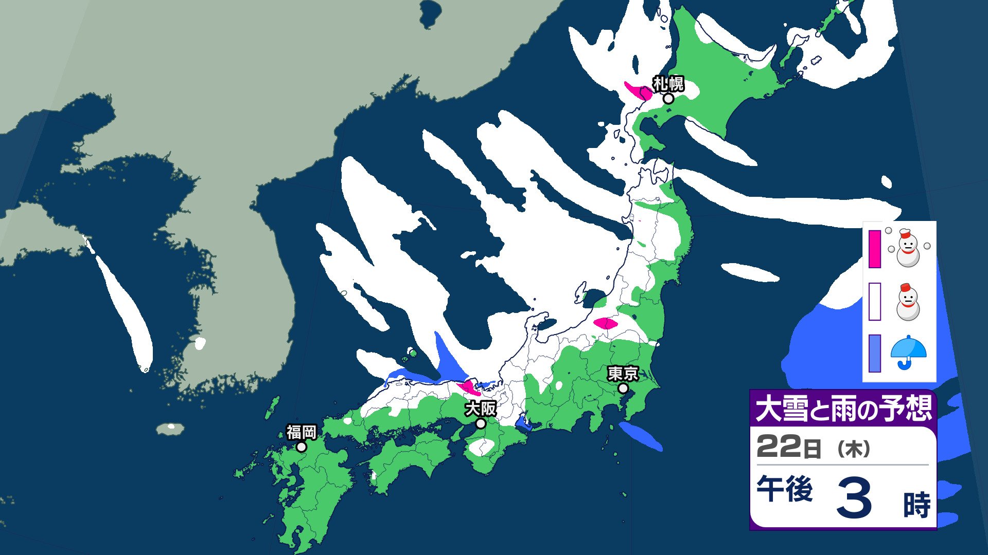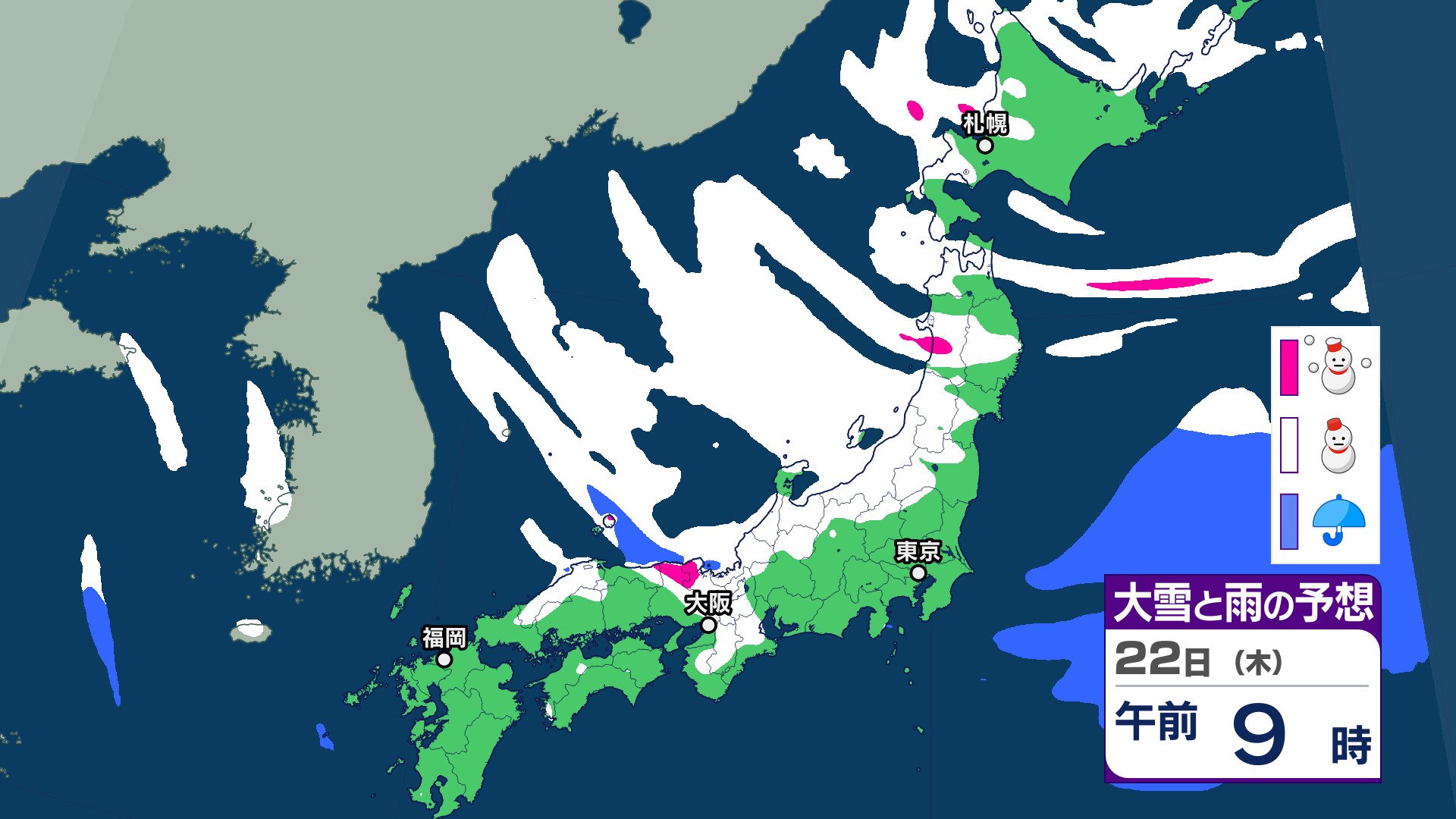 気象庁によりますと、21~22日は、850hPaでは、北日本には-15℃以下、東~西日本には-12℃以下の強い寒気が流れ込み、普段雪の少ない太平洋側でも大雪となるところがあるでしょう。