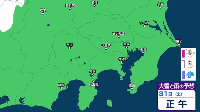 【東京の雪予想】東京・横浜・千葉など29日(木)首都圏の広い範囲で雪雲が… 26日(月)~31日(土)東京・横浜・千葉・埼玉・つくば 雪雨シミュレーション【気象庁 26日現在】 2026年1月26日(月) 08:03 香川 天気 31日(土) ▶26日(月)~31日(土)雪雨シミュレーション 予想にはブレ幅があるため、今後の気象情報をこまめに確認してください。