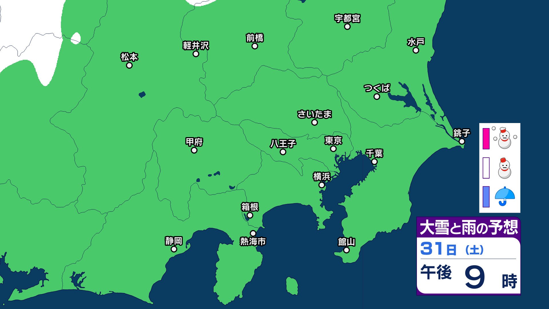 シミュレーションでは、午前0時ごろ、茨城や栃木、群馬、長野の一部地域に雪雲がかかっています。