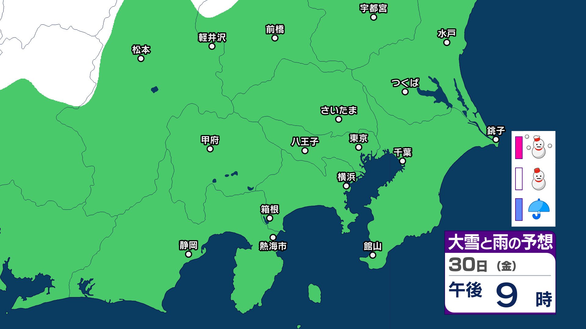 30日の東京地方は、晴れで昼過ぎまで時々曇りとなるでしょう。伊豆諸島では雪や雨の降る所があり、雷を伴う所がある見込みです。