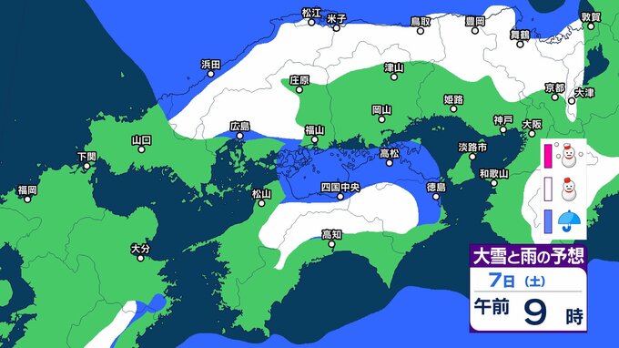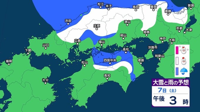 【中国・四国地方の雪 どうなる?】広島・岡山・山口・鳥取・島根・香川・愛媛・高知・徳島 2月3日(火)~8日(日)雪雨シミュレーション【気象庁 3日現在】 2026年2月3日(火) 10:30 岡山 7日(土) 3日(火)~8日(日)にかけて中国・四国地方の雪雨シミュレーション画像
