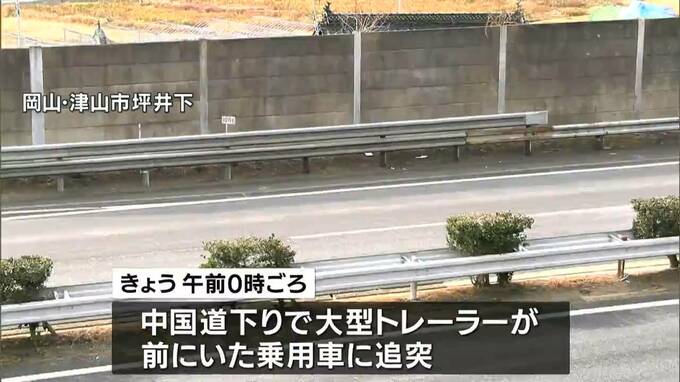 【中国道】車両の原型をとどめないほど大破 死亡事故 大型トレーラーが乗用車に追突 下りが約3時間通行止め 【岡山】