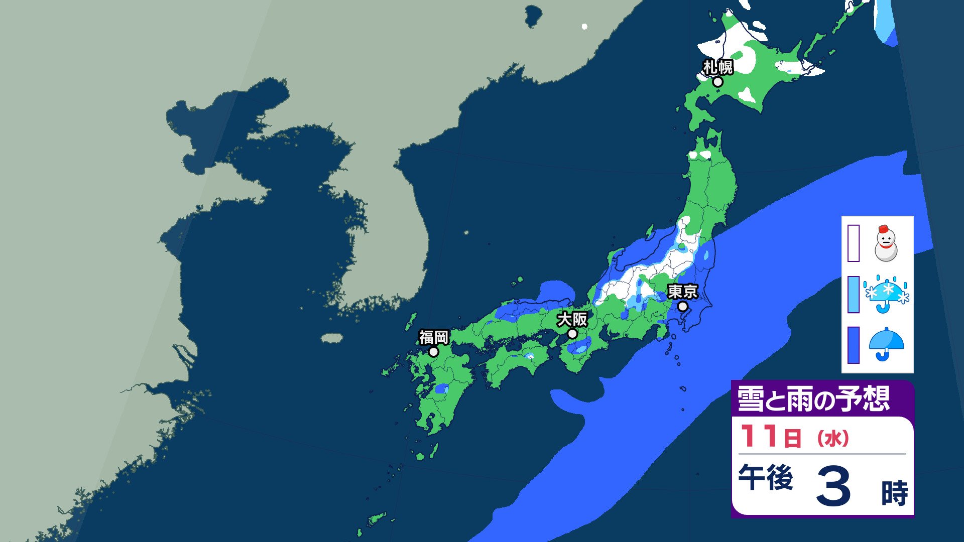 【今後の雪雨どうなる?】あす11日(祝)全国的に雨模様 太平洋側で雨が強まる場所も 10日(木)~16日(月)3時間ごとの雪雨シミュレーション【気象庁 10日午後10時更新】 2026年2月10日(火) 22:10 岡山 11日(水・祝) 11日(水)~16日(月)までの雪雨シミュレーション画像 11日(水)~16日(月)までの雪雨シミュレーション画像