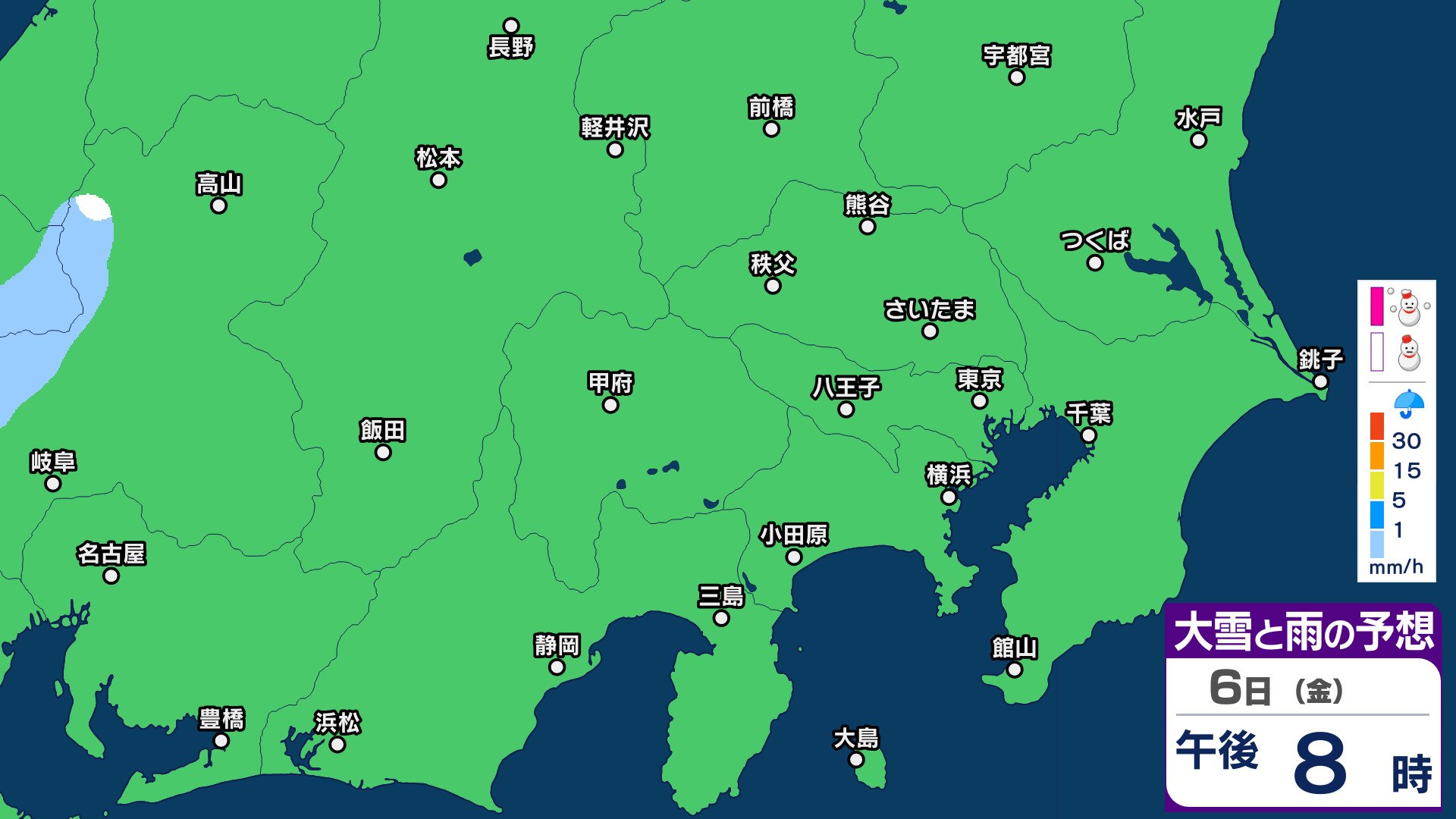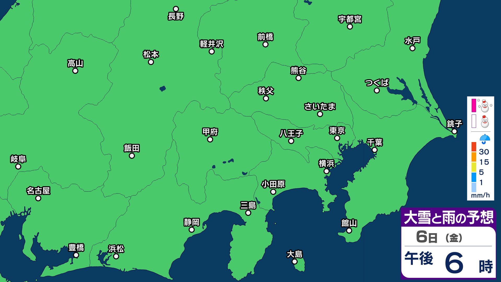 ▶3月3日(火)~3月6日(金)1時間ごとの雪雨シミュレーション画像