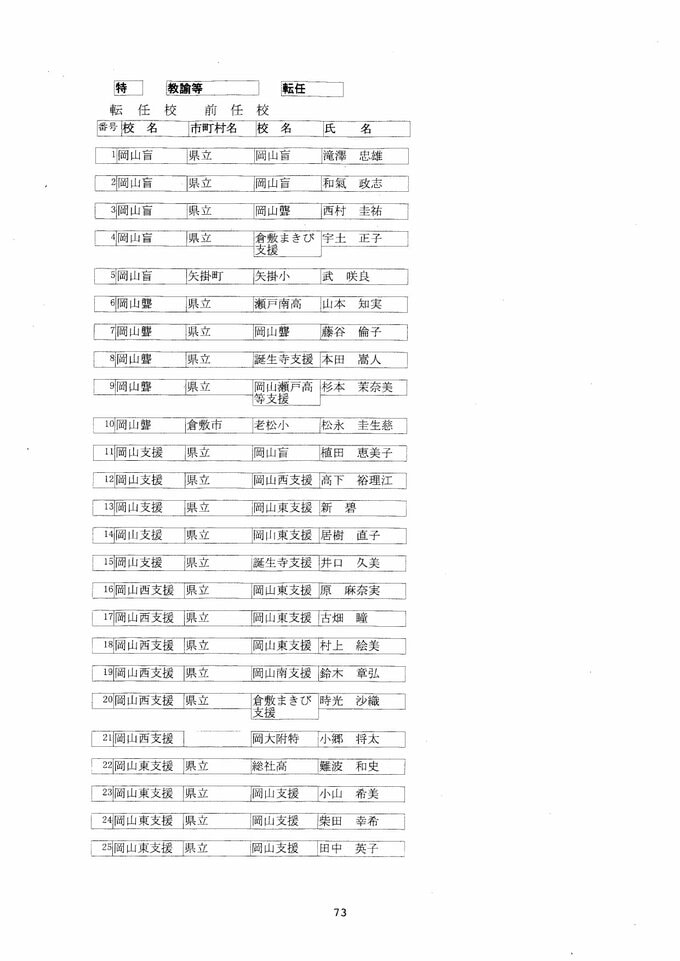 岡山県 教職員人事異動2026「あの先生は、どこへ?」(岡山市以外)【高校/義務・名簿一覧掲載・検索/令和8年度】 2026年3月26日(木) 09:09 岡山 名簿 名簿一覧画像 【小学校】 【中学校】 【高校/義務】