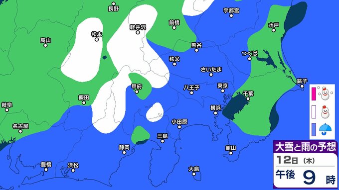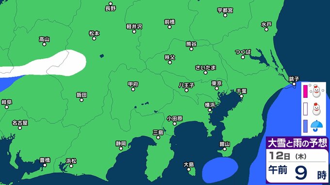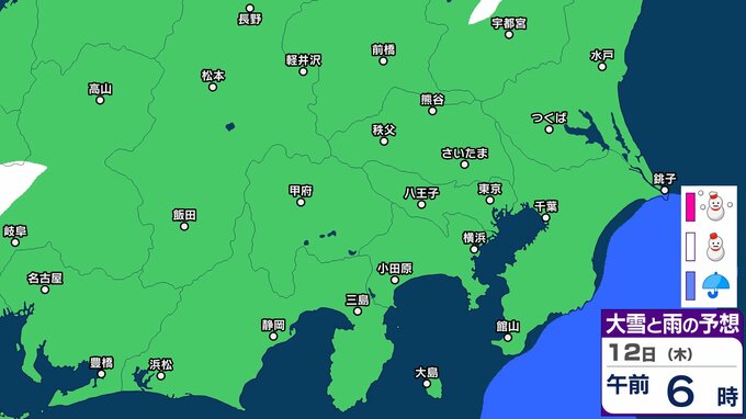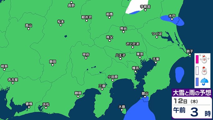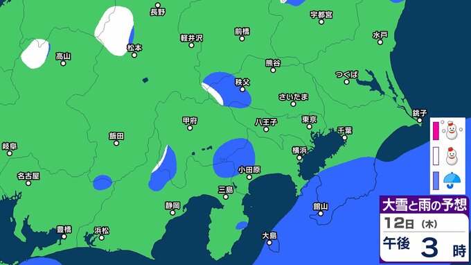 【東京首都圏で今夜雪か?】東京・神奈川・千葉・埼玉・茨城・群馬・栃木・山梨・長野 関東甲信7日(土)~12日(木)3時間ごと雪雨シミュレーション【気象庁7日現在】 2026年3月7日(土) 09:36 香川 12日(木) 【画像】7日(土)~12日(木)3時間ごとの雪雨シミュレーション 【画像】7日(土)~12日(木)3時間ごとの雪雨シミュレーション ※シミュレーション(GSM)は比較的大まかに雨・雪雲を予想する傾向があるため、局地的には雨・雪が降らないこともあります。予想にはブレ幅がありますので、最新の気象情報を確認してください。