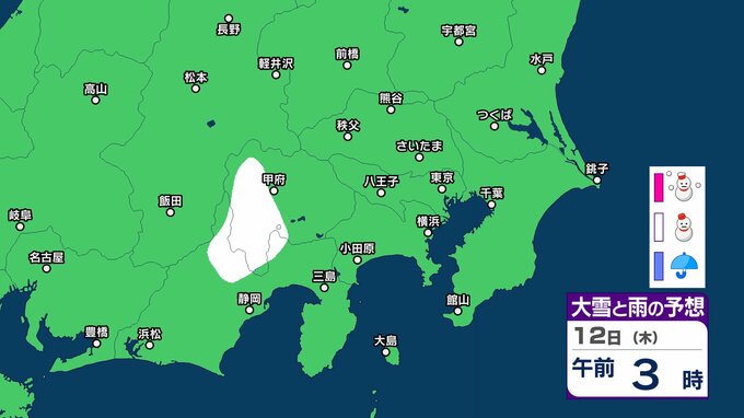 【東京首都圏 こんや雪?】東京・神奈川・千葉・埼玉・茨城・群馬・栃木・山梨・長野 関東甲信9日(月)~14日(土)3時間ごと雪雨シミュレーション【気象庁9日正午シミュレーション更新】 2026年3月9日(月) 12:49 香川 天気 12日(木) 9日(月)~14日(土)3時間ごとの雪雨シミュレーション 9日(月)~14日(土)3時間ごとの雪雨シミュレーション