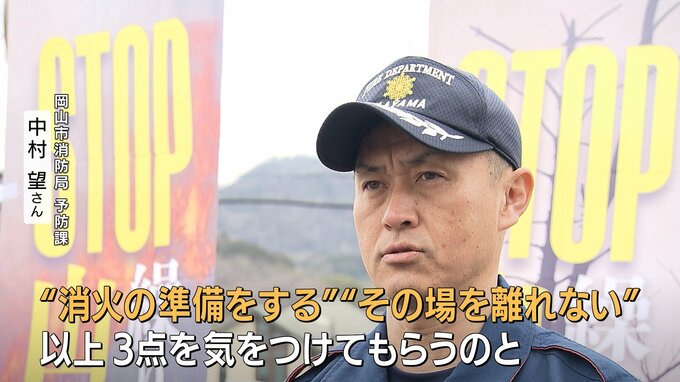 岡山市消防局によりますと昨年、管内で発生したたき火による火災は49件、林野火災は17件で、住人に火災予防などが記されたパンフレットを配り火災への注意を訴えました。