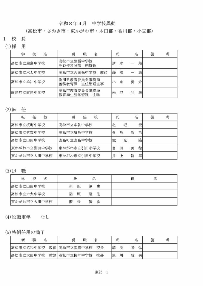 【2026年4月】香川県教職員人事異動「あの先生は、どこへ?」東部中学校(高松市・さぬき市・東かがわ市・木田郡・香川郡・小豆郡)【画像一覧掲載】 2026年3月19日(木) 15:08 香川 東部中学校(高松市・さぬき市・東かがわ市・木田郡・香川郡・小豆郡) 《画像》 【西部小学校】【東部小学校】【西部中学校】【東部中学校】【県立教員・事務職員】