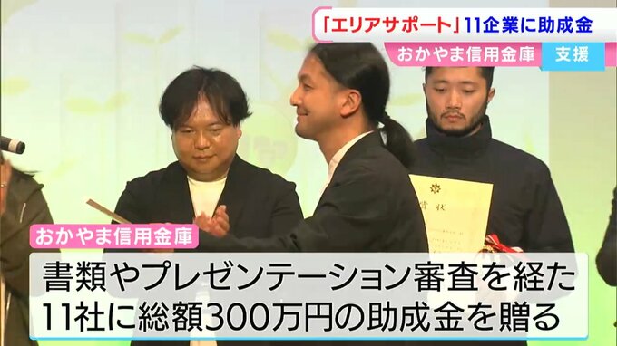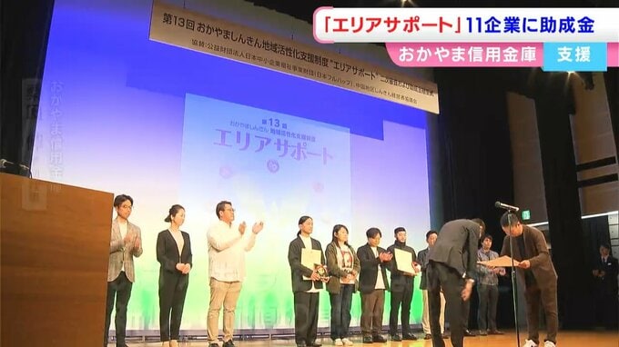 独自性や成長性のある事業に取り組む事業者を支援しようと、おかやま信用金庫から11の企業に助成金が贈られました。