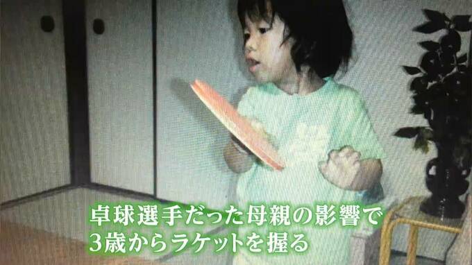 卓球選手だった母親の影響で3歳からラケットを握り、小学4年生の時には全日本選手権で優勝。幼いころから技術の高さには、目を見張るものがありました。
