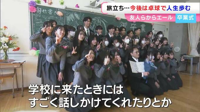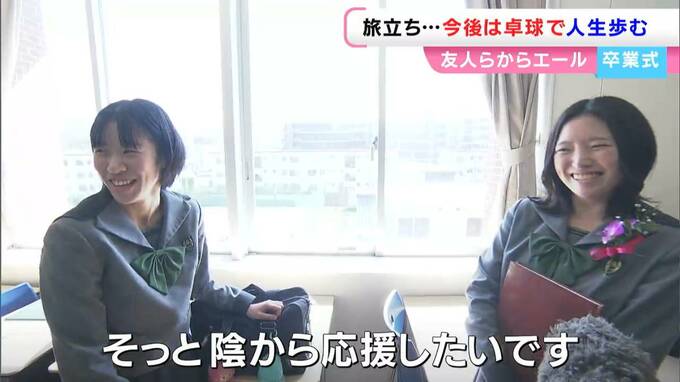 「学校に来た時にはすごく話しかけてくれたりとか、楽しく毎日を過ごせたので、一日一日がすごくいい思い出だったかなと思います。今後は卓球で人生を歩んでいこうと思うので、今まで学んできたことだったりだとか、そういうのを生かして挑戦し続けられたらいいかなって思います」