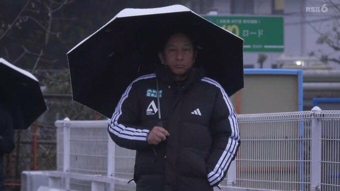 雨の中、走り出す選手たち。毎日、このような厳しい練習を積んでいます。傘を差し、厳しいまなざしを向ける原晋監督の姿も【画像⑧】。