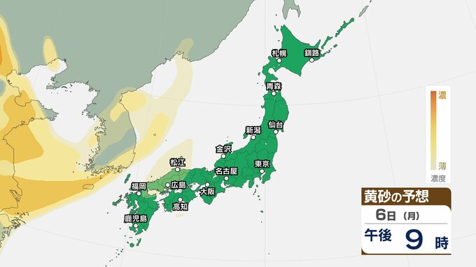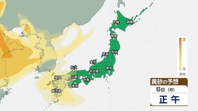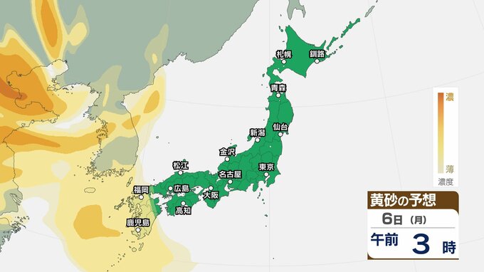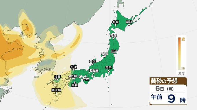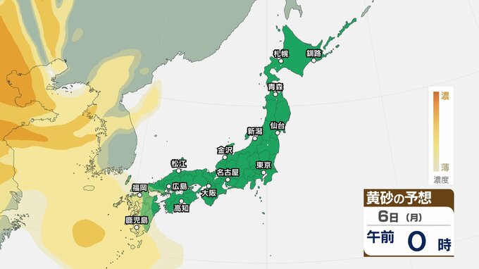 【黄砂情報】5日(日)九州・中国の広い範囲で影響の可能性 日本列島に黄砂が飛来か…【気象庁 黄砂シミュレーション/4日現在】 2026年4月4日(土) 10:11 香川 天気 6日(月) 4日(土)~7日(火)黄砂シミュレーション 4日(土)~7日(火)黄砂シミュレーション