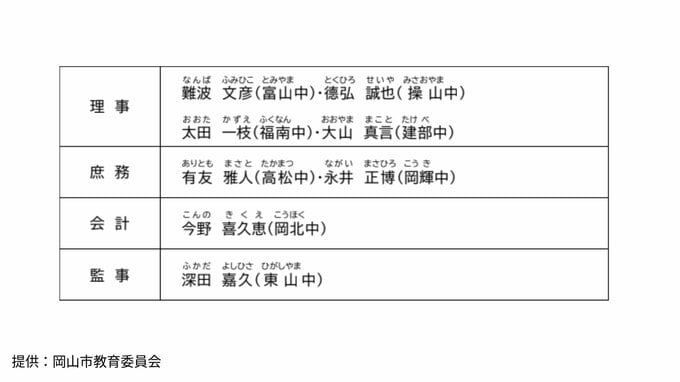 岡山市中学校校長会 2026年度(令和8年度)新役員が決定 会長には谷岡氏(京山中)が就任