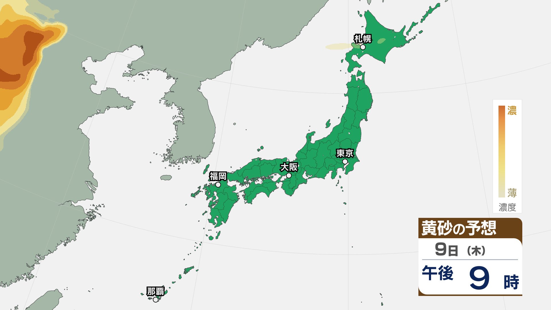 【黄砂情報】10日(金)ごろから日本列島に飛来か…西日本・東日本の広い範囲で影響の可能性 8日(水)~11日(土)黄砂シミュレーション【気象庁 8日現在】 2026年4月8日(水) 18:00 香川 天気 9日(木) ▶8日(水)~11日(土)黄砂シミュレーション画像 ▶8日(水)~11日(土)黄砂シミュレーション画像