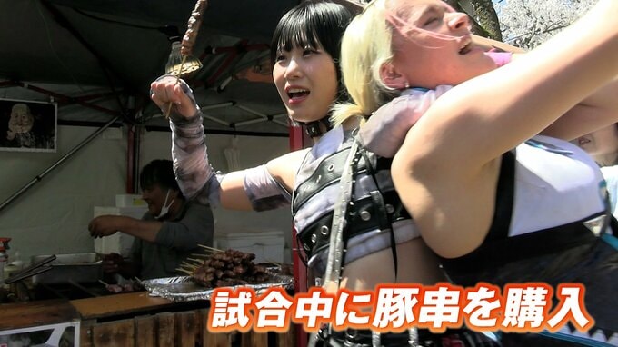 お腹が空いたのでしょうか。対戦相手を引きずりながら屋台に食べ物を買いに行くという珍場面も…。時にユーモアを織り交ぜながら展開される名勝負に拍手喝采です。